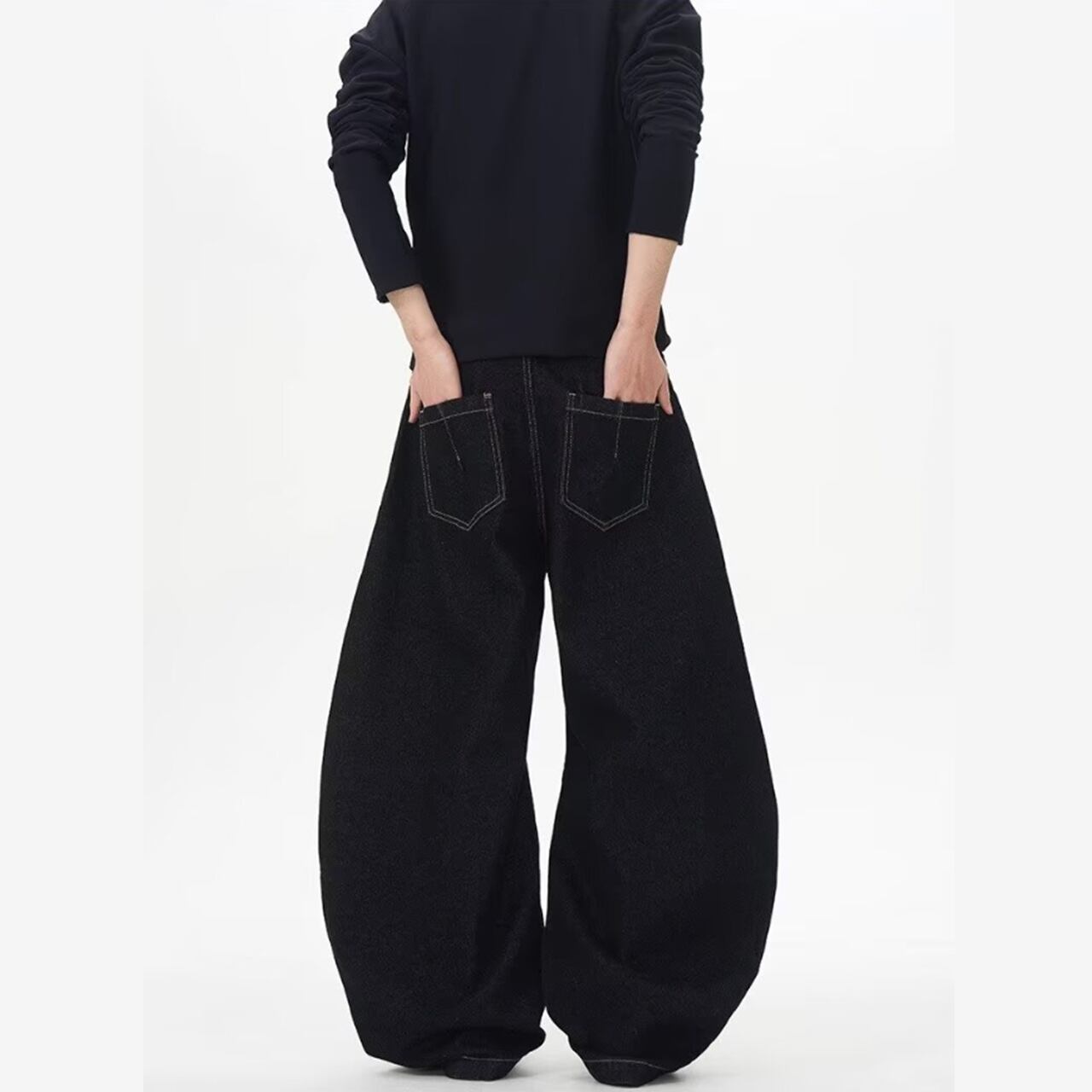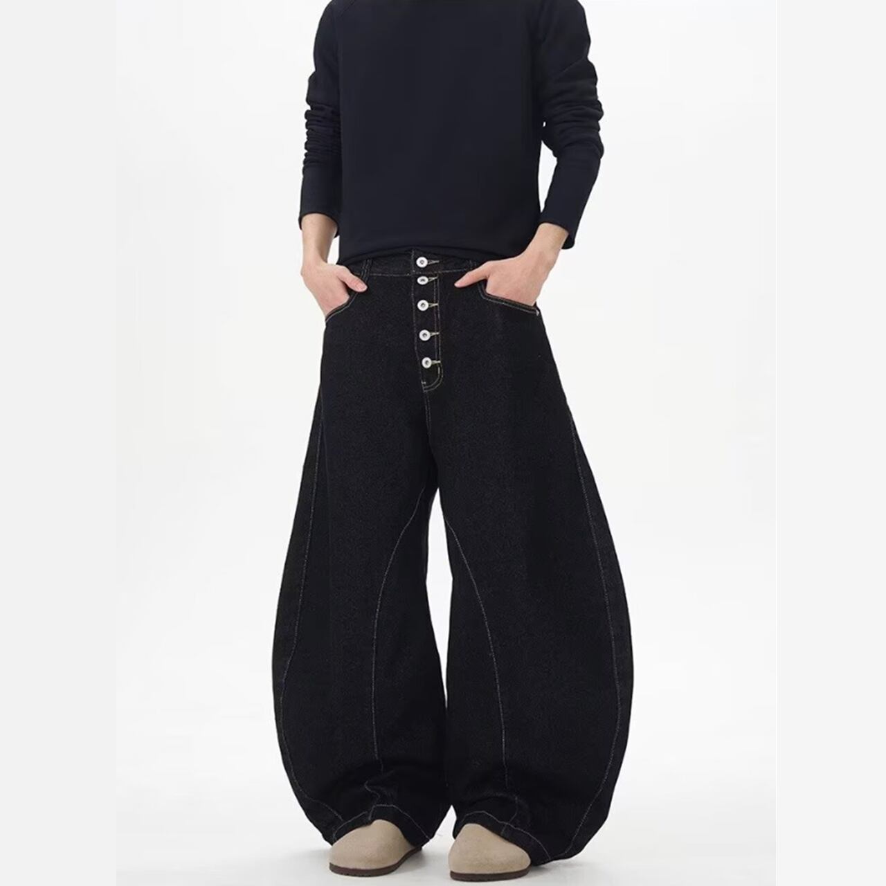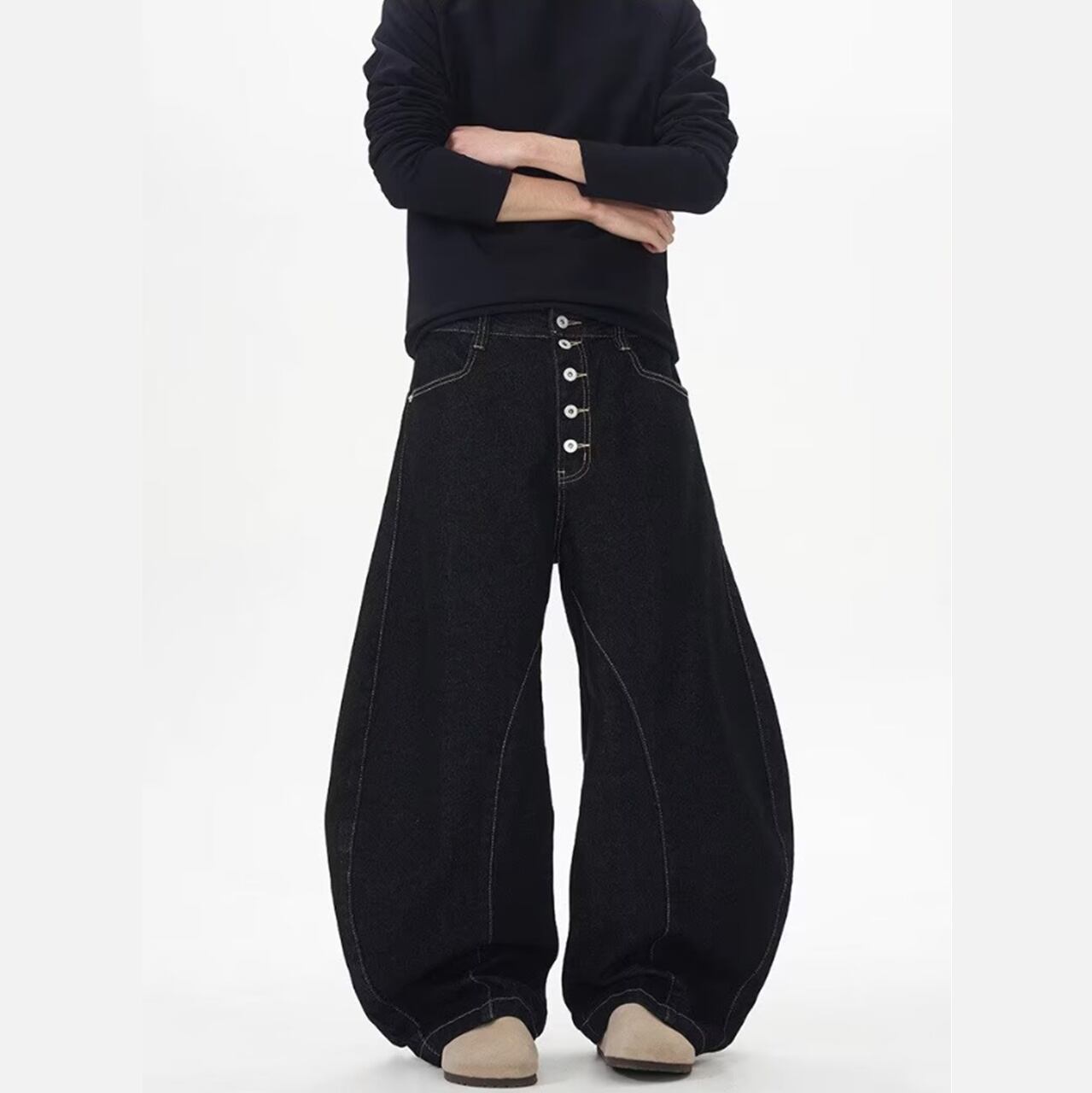 ステッチボタン フライカーブデニムパンツ b00538 【S~3XLサイズ】