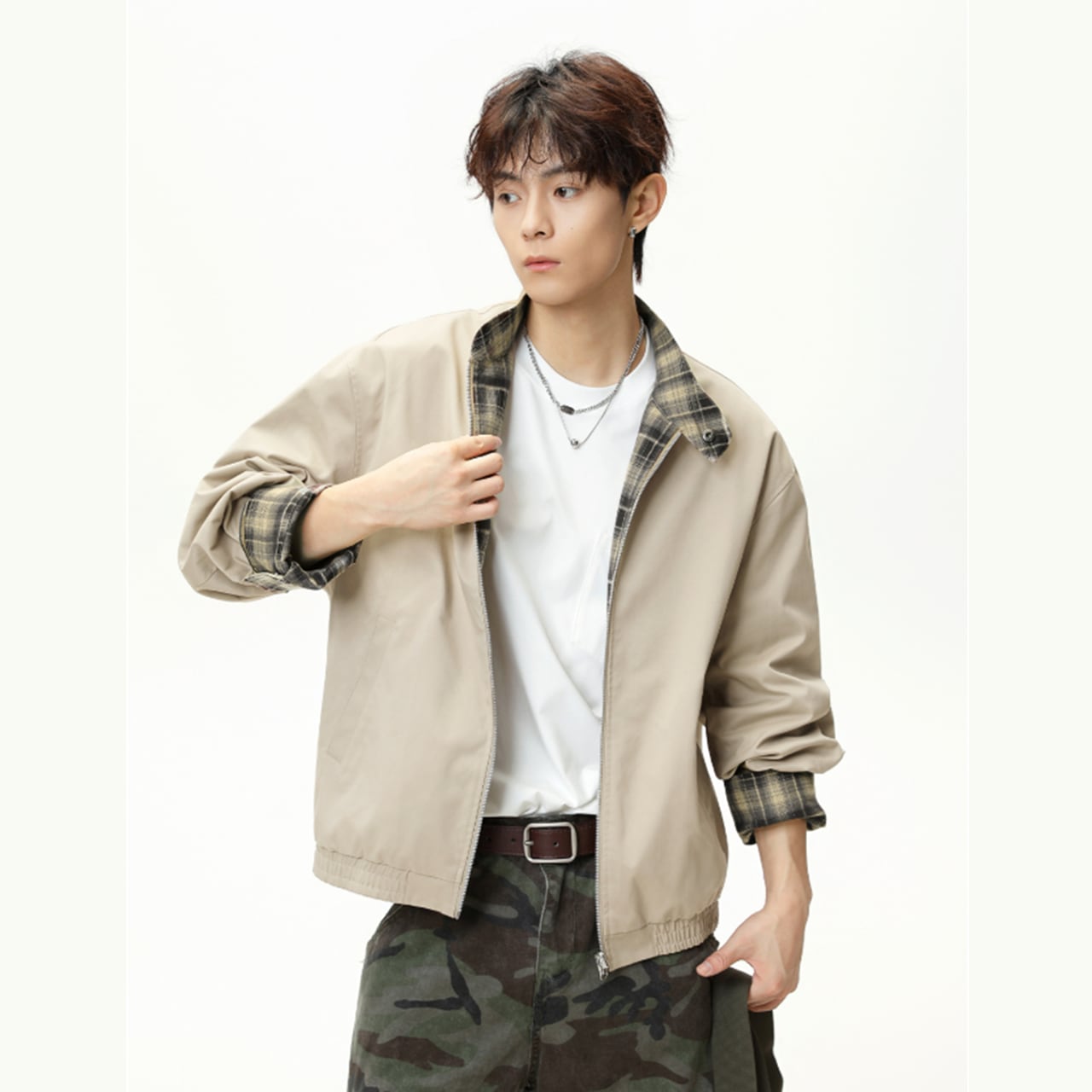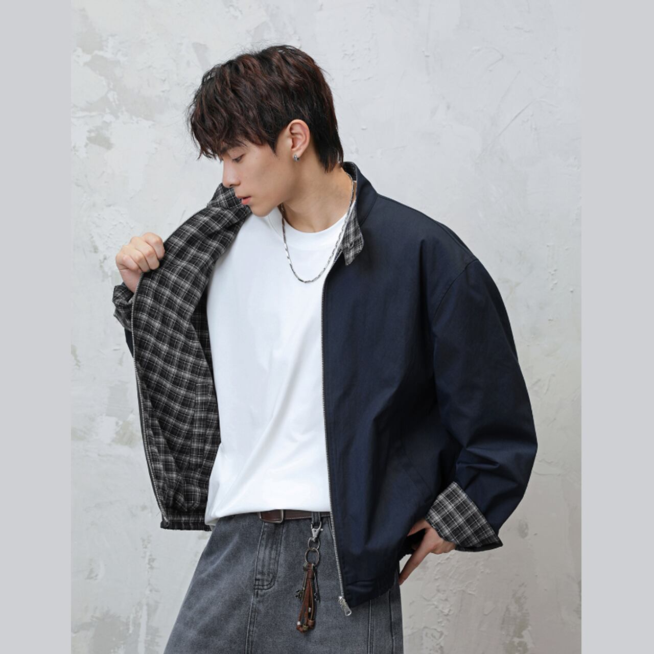 ユニークでおしゃれなリバーシブルチェックジャケットは、カジュアルからフォーマルまで幅広いスタイルに対応できるアイテムです。2つの異なるデザインを一着で楽しめるため、コーディネートに便利さと新しさを提供します。