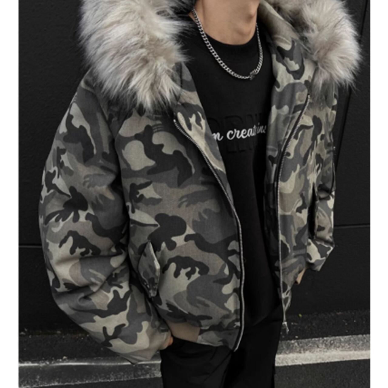ファー付き迷彩ジャケットは、トレンド感溢れる迷彩柄とファーの組み合わせが魅力的な一着です!カジュアルながらもスタイリッシュなデザインで、デイリーコーデやアウトドアイベントなど、幅広いシーンで活躍すること間違いなしです。