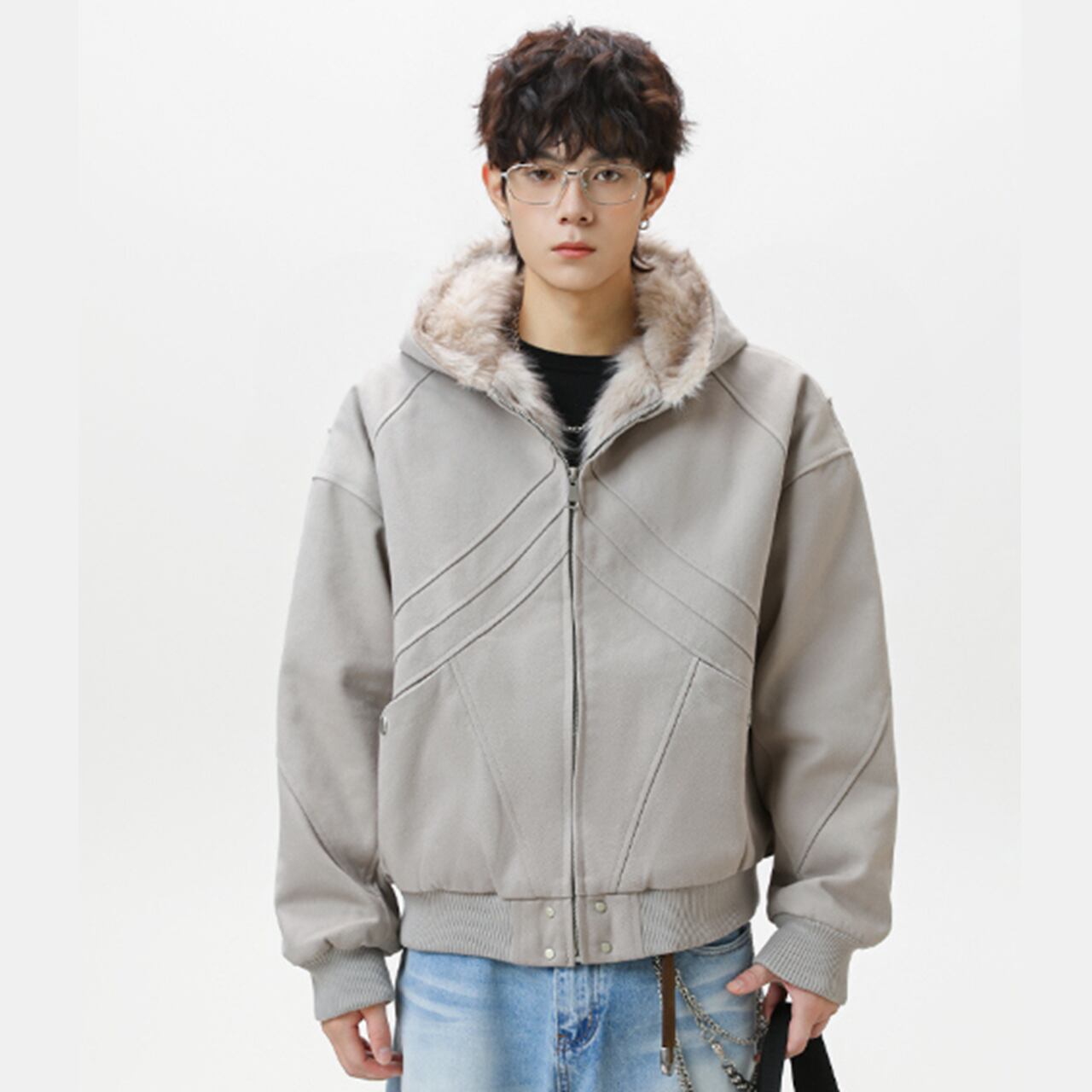 ファー付きステッチラインジャケット b10433 【M~XXLサイズ】