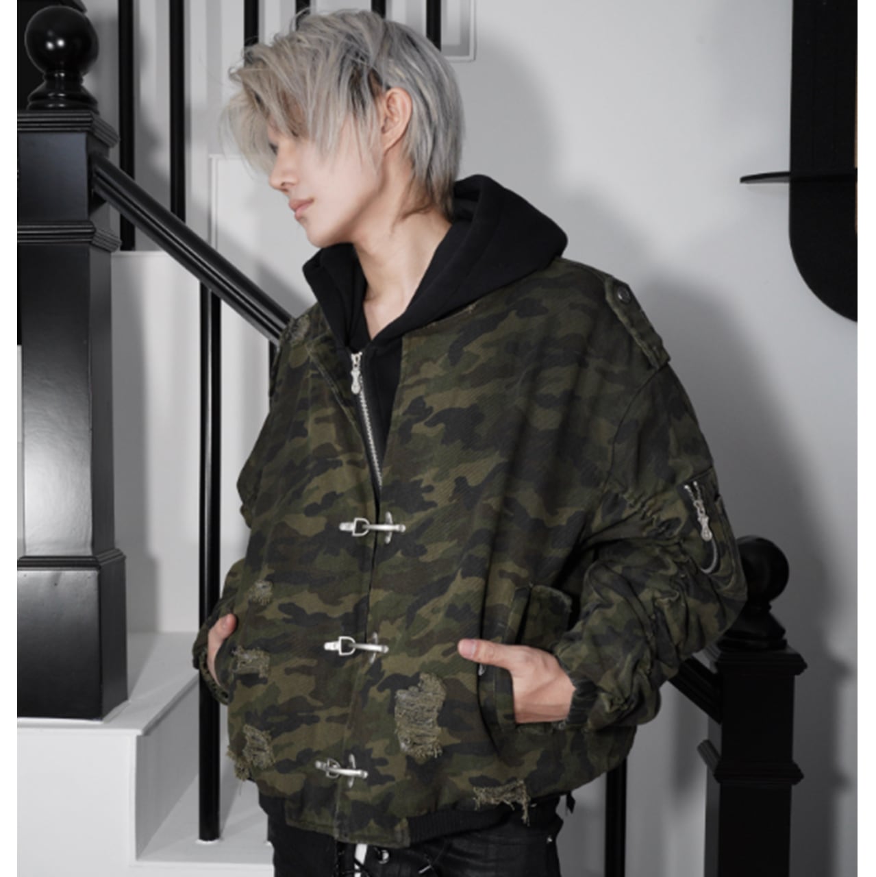 迷彩ファイヤーマンジャケットは、クールな迷彩柄が印象的なファイヤーマンジャケットです!機能性とスタイルが絶妙に融合しており、カジュアルからアウトドアシーンまで様々な場面でご活用いただけるアイテムです。