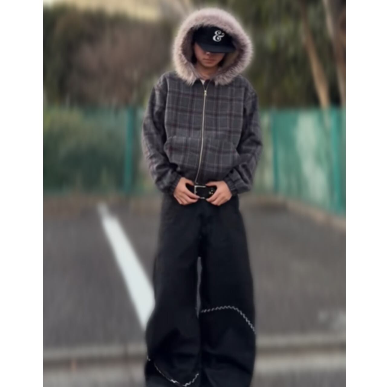 チェックファー フーデッドブルゾン b10449 【M~XXLサイズ】