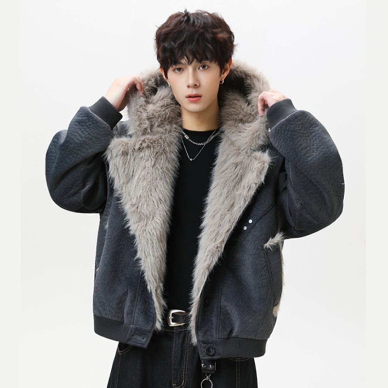 ファー フーデッドブルゾン b10450 【M~XXLサイズ】
