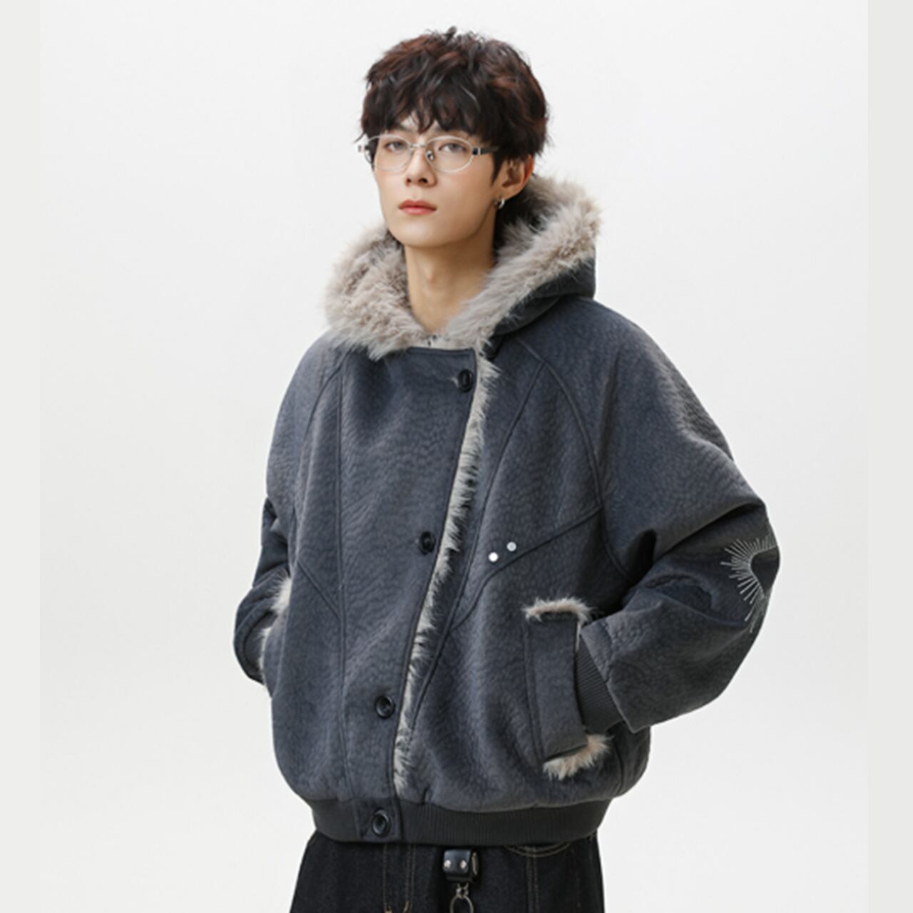 ファー フーデッドブルゾンは、ファーを使用したフーデッドデザインは、見た目にも華やかさをプラスします。カジュアルなコーディネートにぴったりで、デイリースタイルから特別な場面まで幅広く活躍するアイテムとなっています。