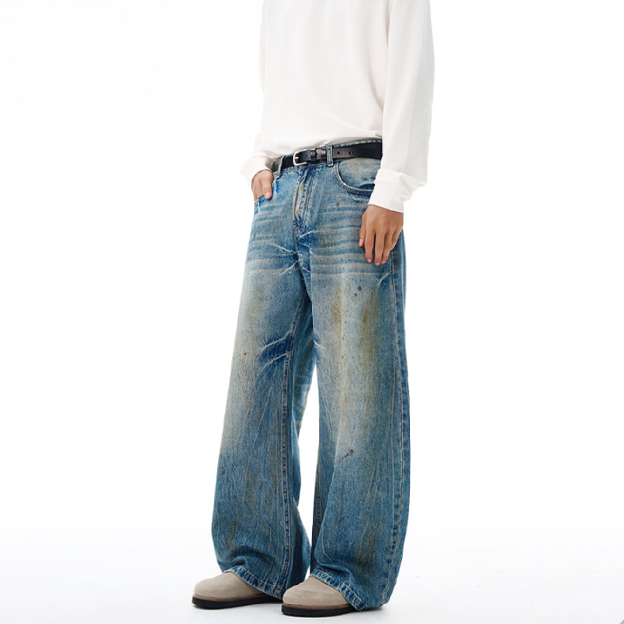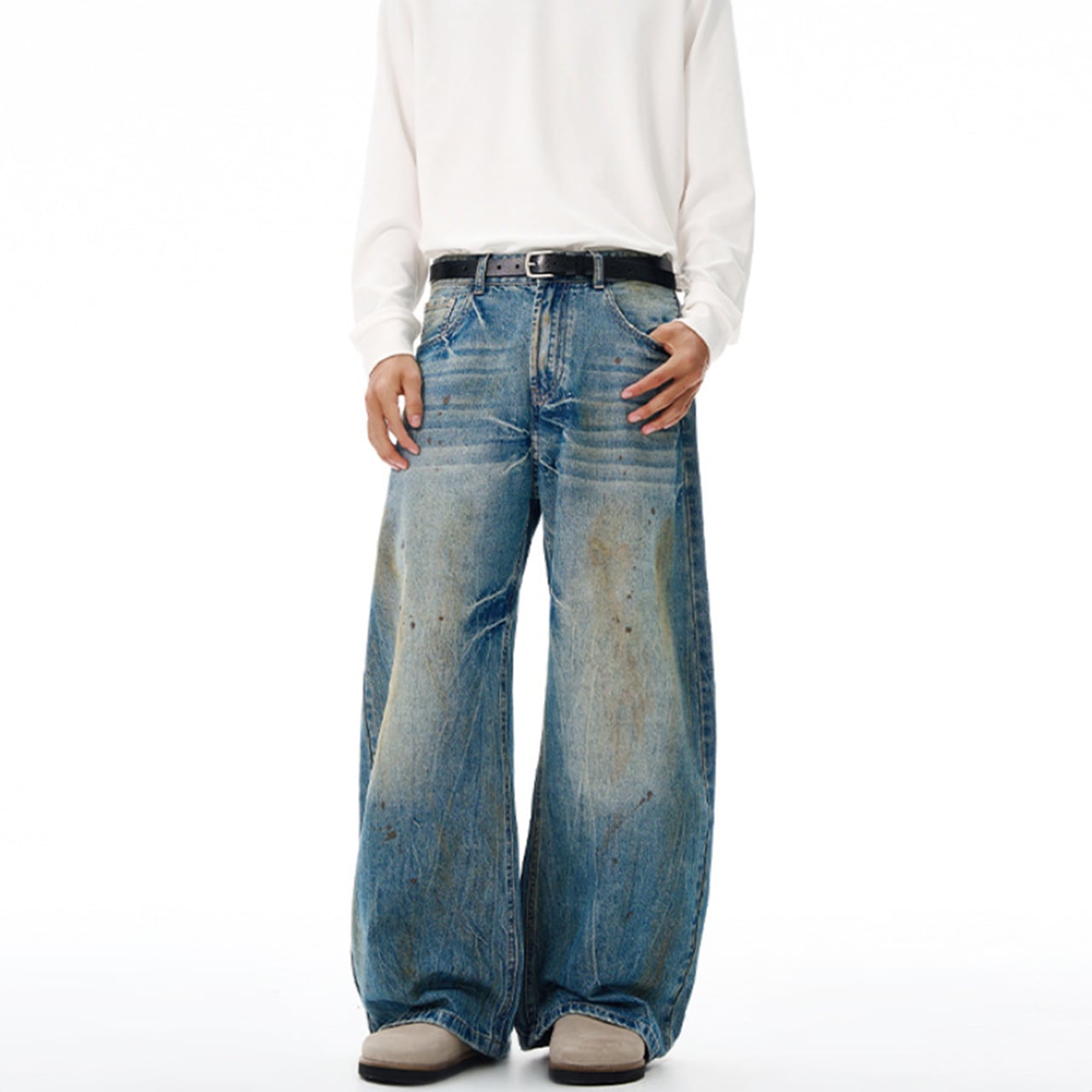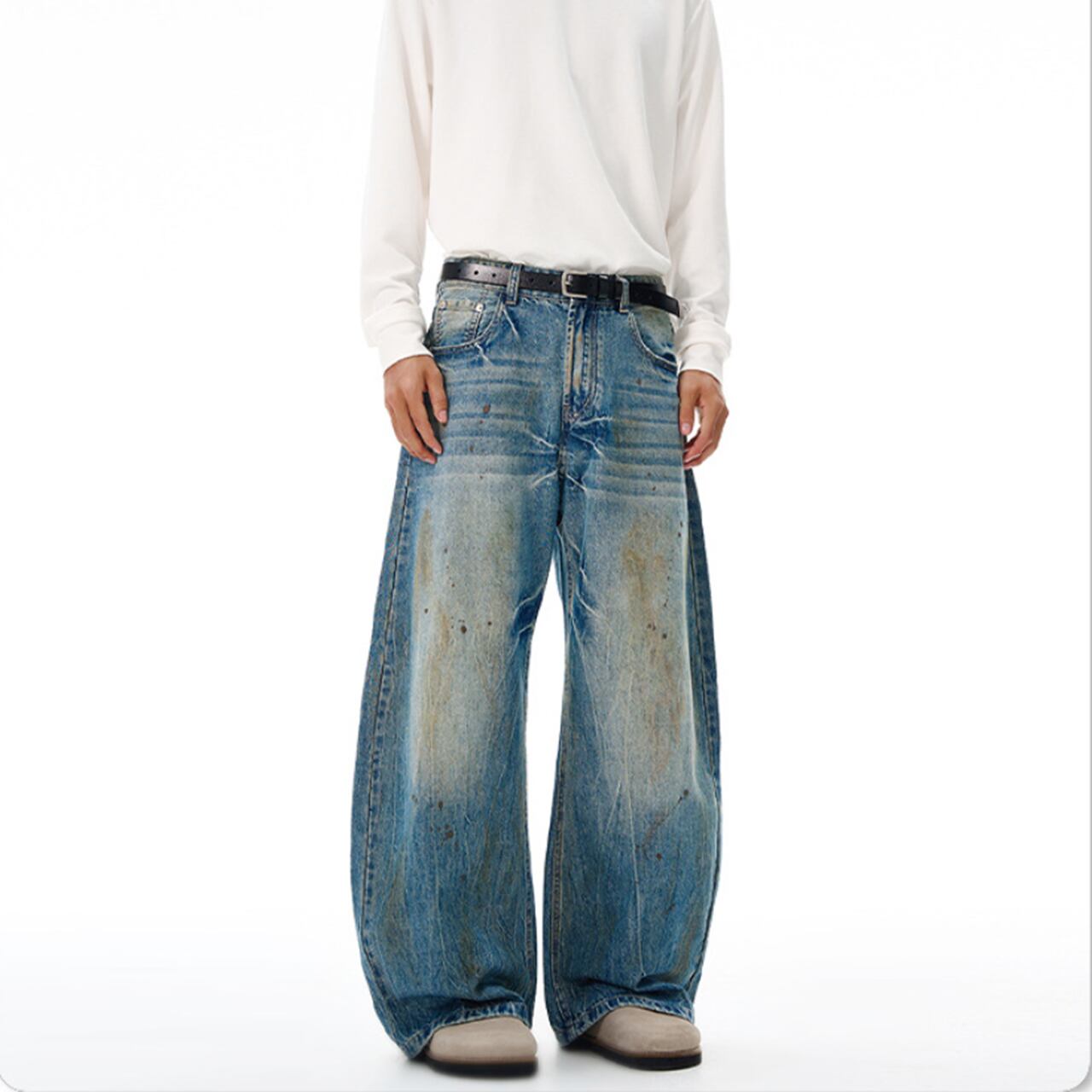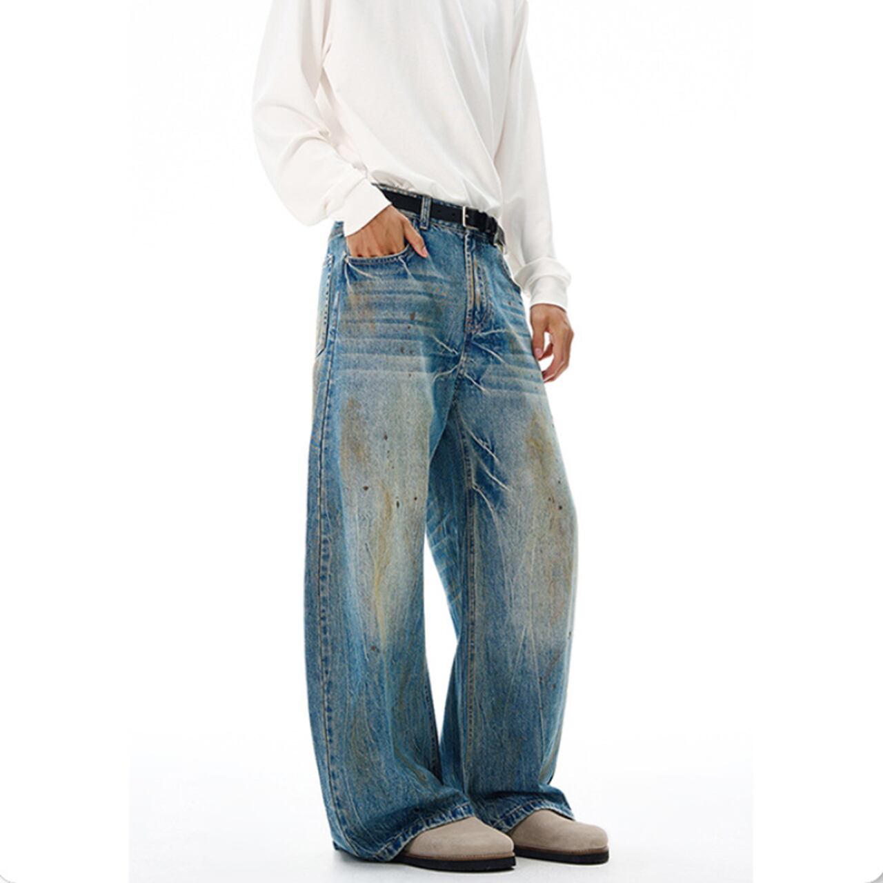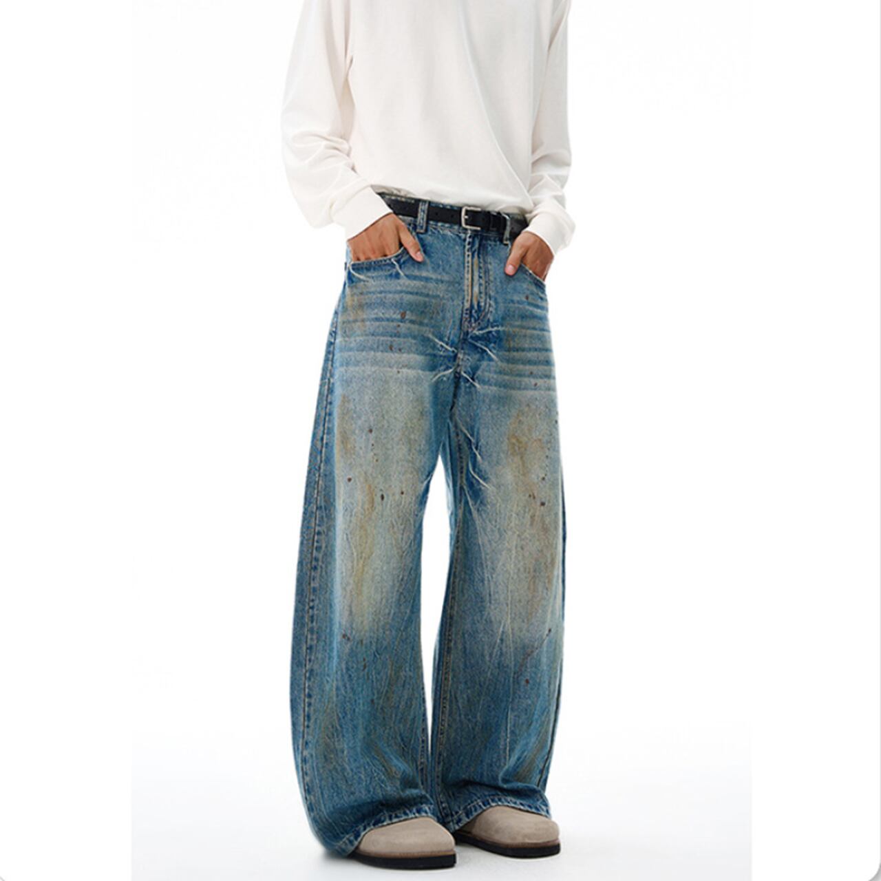 クラッシュウォッシュ ワイドデニムは、個性的なクラッシュ加工と快適な履き心地を兼ね備えたデニムパンツです!ワイドシルエットが絶妙なバランスを生み出し、カジュアルなコーディネートにもぴったりなアイテムとなっています。