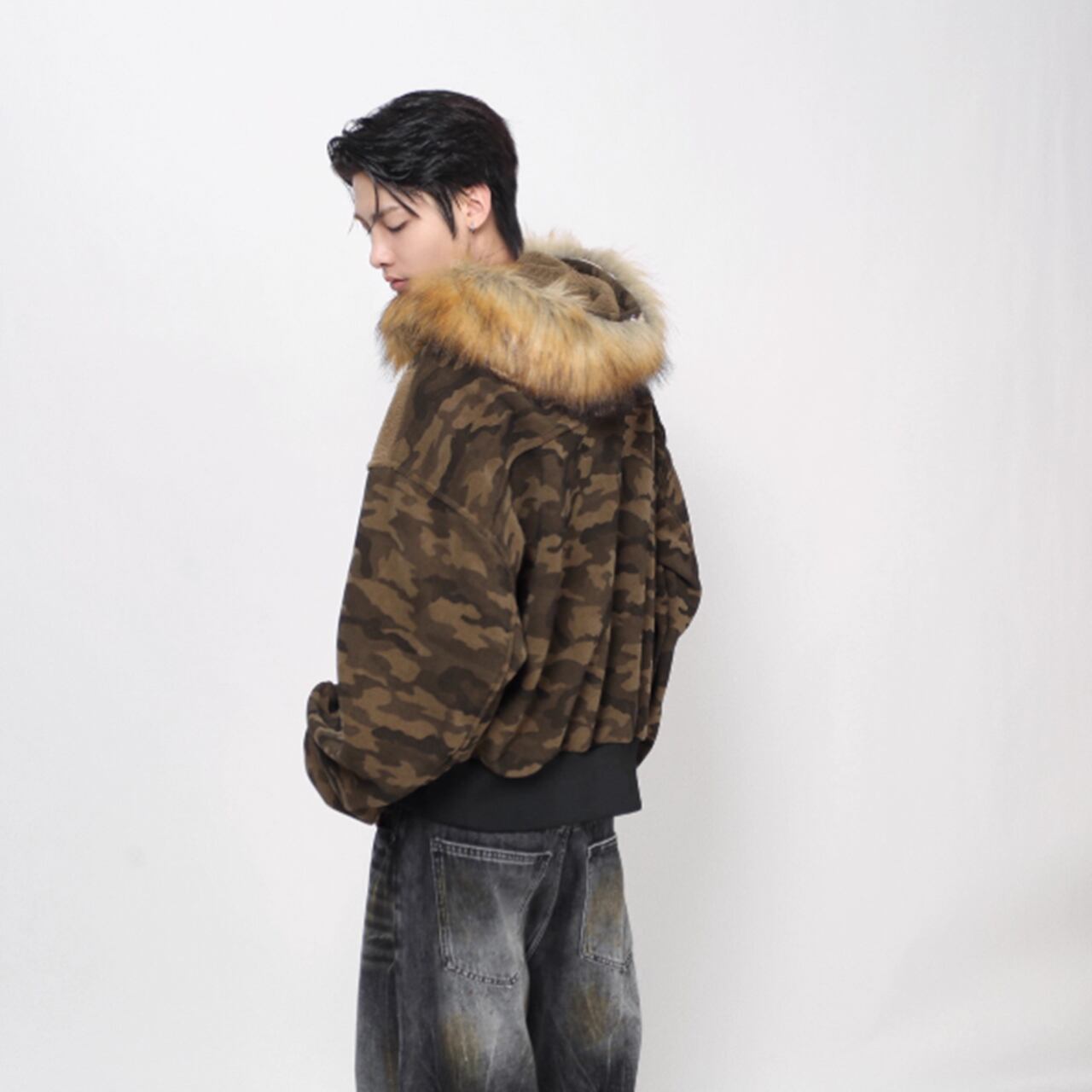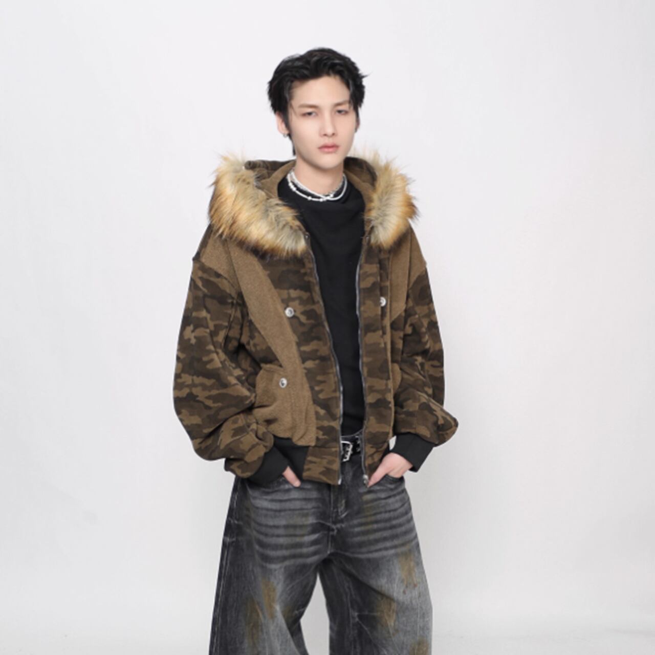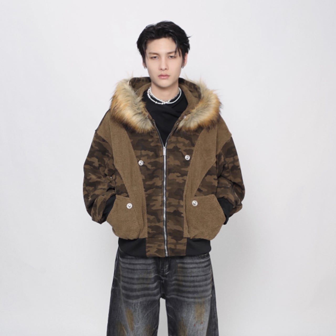 カモフラファーミリタリージャケットは、スタイリッシュなカモフラージュデザインと暖かさを兼ね備えたミリタリージャケットです!これ一着で、カジュアルなデイリースタイルからアウトドアシーンまで幅広く活躍できるアイテムです。
