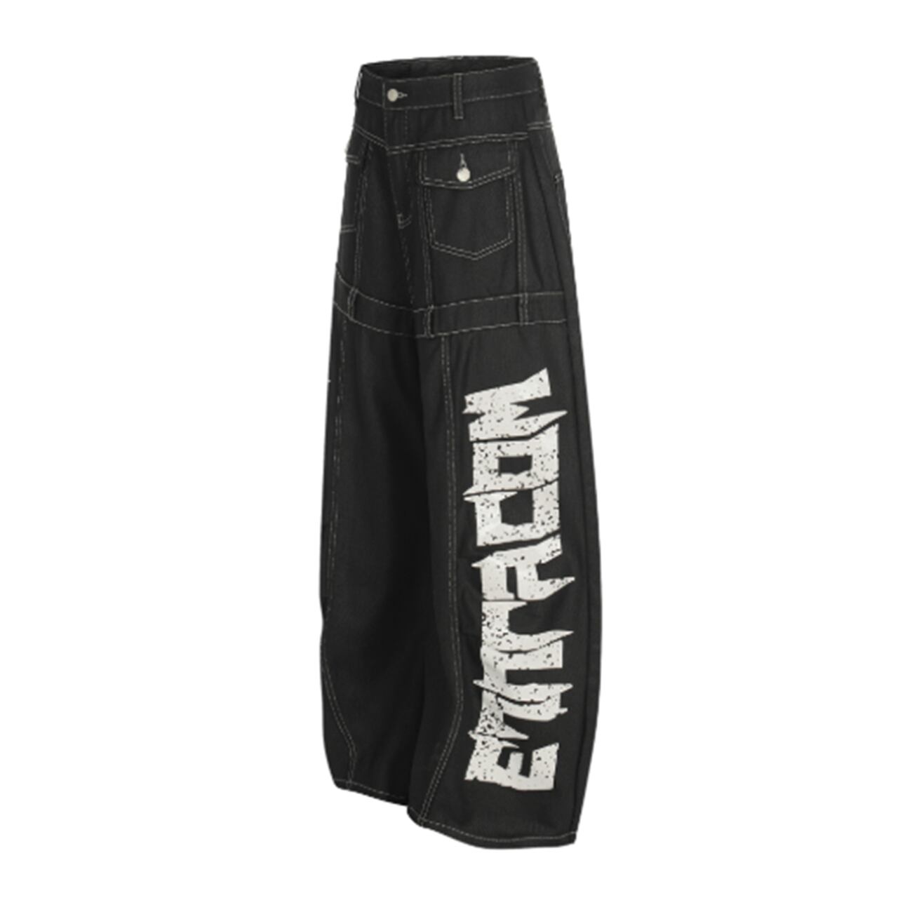 サイドグラフィック ワイドカーブデニムパンツは、ユニークなグラフィックデザインが特徴的なワイドパンツです。コーディネートにアクセントを加えつつ、カーブしたシルエットが美しいラインを演出します。さらに、リラックスしたフィット感で、日常使いにもぴったりです。