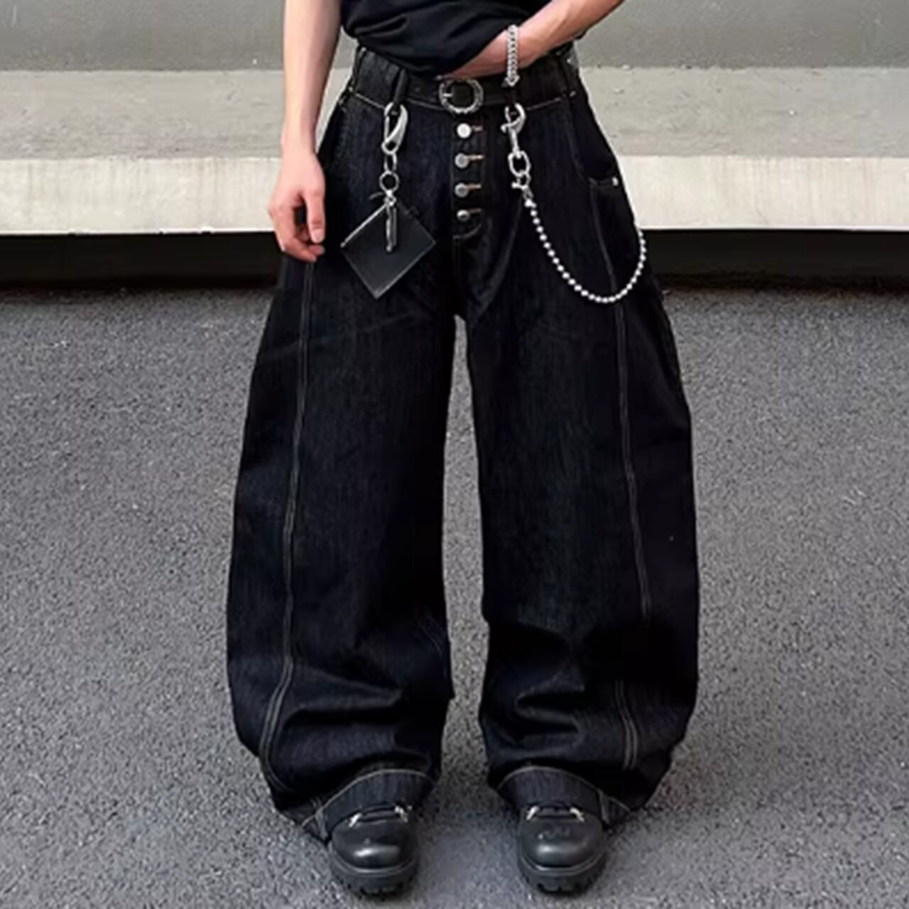 ぜひ、このボタンフライ カーブワイドデニムパンツで快適なスタイルを手に入れてください!