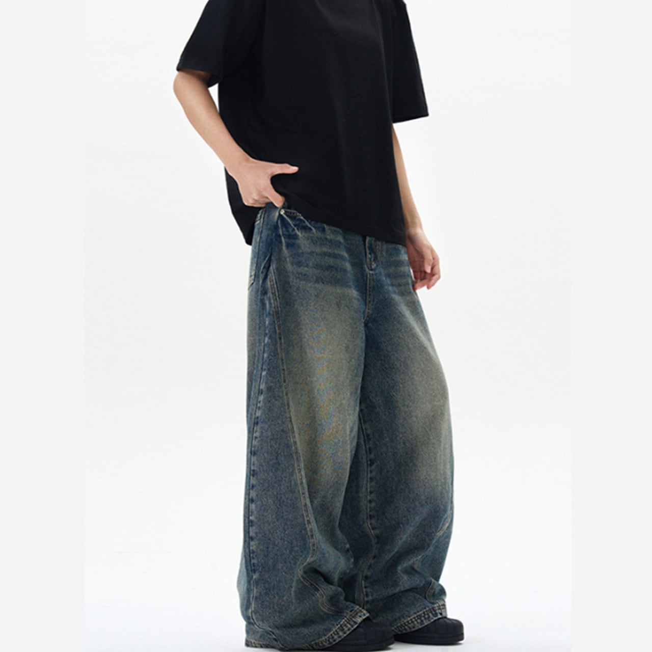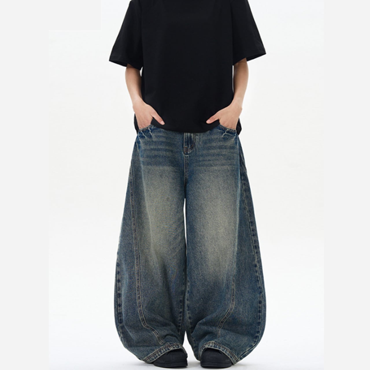 このデニムは、クラシックなデザインに個性的なカーブシルエットが加わり、さまざまなトップスと絶妙にマッチします。スタンダードなTシャツから、少しドレスアップしたブラウスまで、幅広いスタイルに対応可能です!