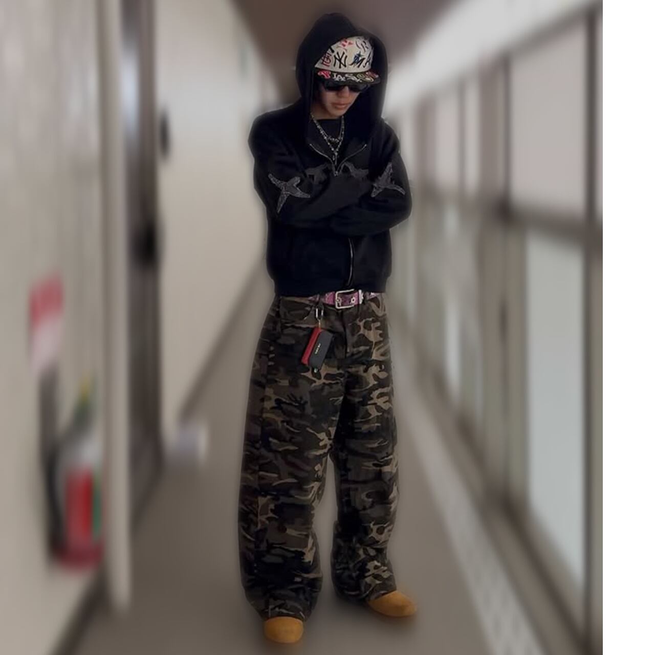 迷彩柄がアクセントとなり、シンプルなトップスとの組み合わせでスタイリッシュな印象を演出します。Tシャツやスウェット、さらにはジャケットを合わせても◎。多様なスタイルにフィットし、自分らしいコーディネートを楽しめます!