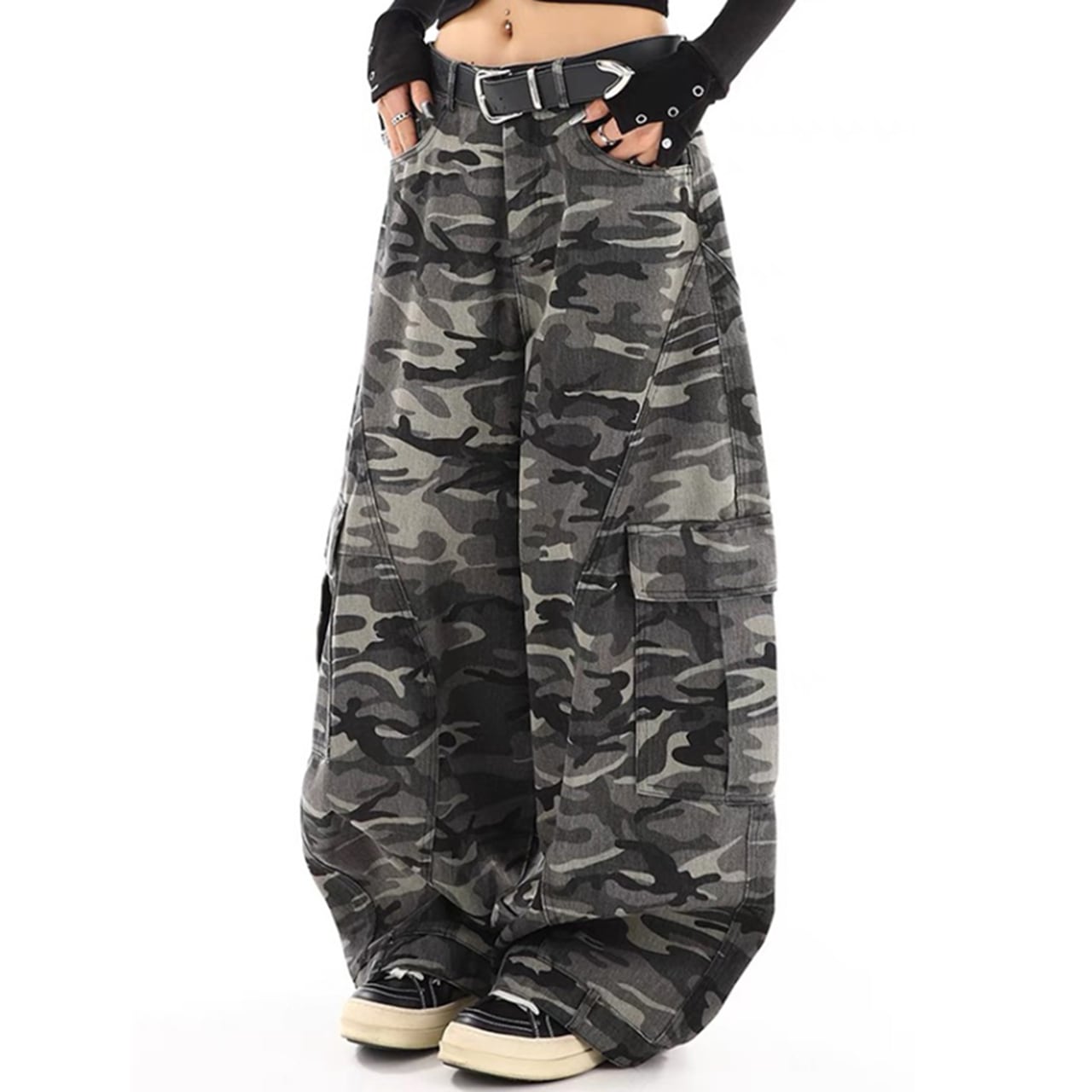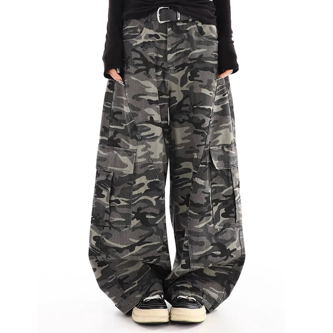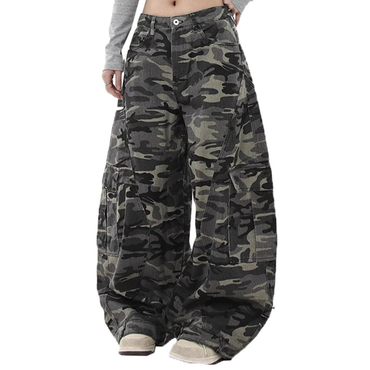 この迷彩カーゴパンツは、ワイドシルエットとカモ柄が特徴の注目アイテムです。軽やかな素材感とルーズなデザインにより、快適な着用感を提供し、ストリートファッションにぴったりのスタイリッシュな一着です。アウトドアや日常使いにも最適で、さまざまなシーンで活躍します!