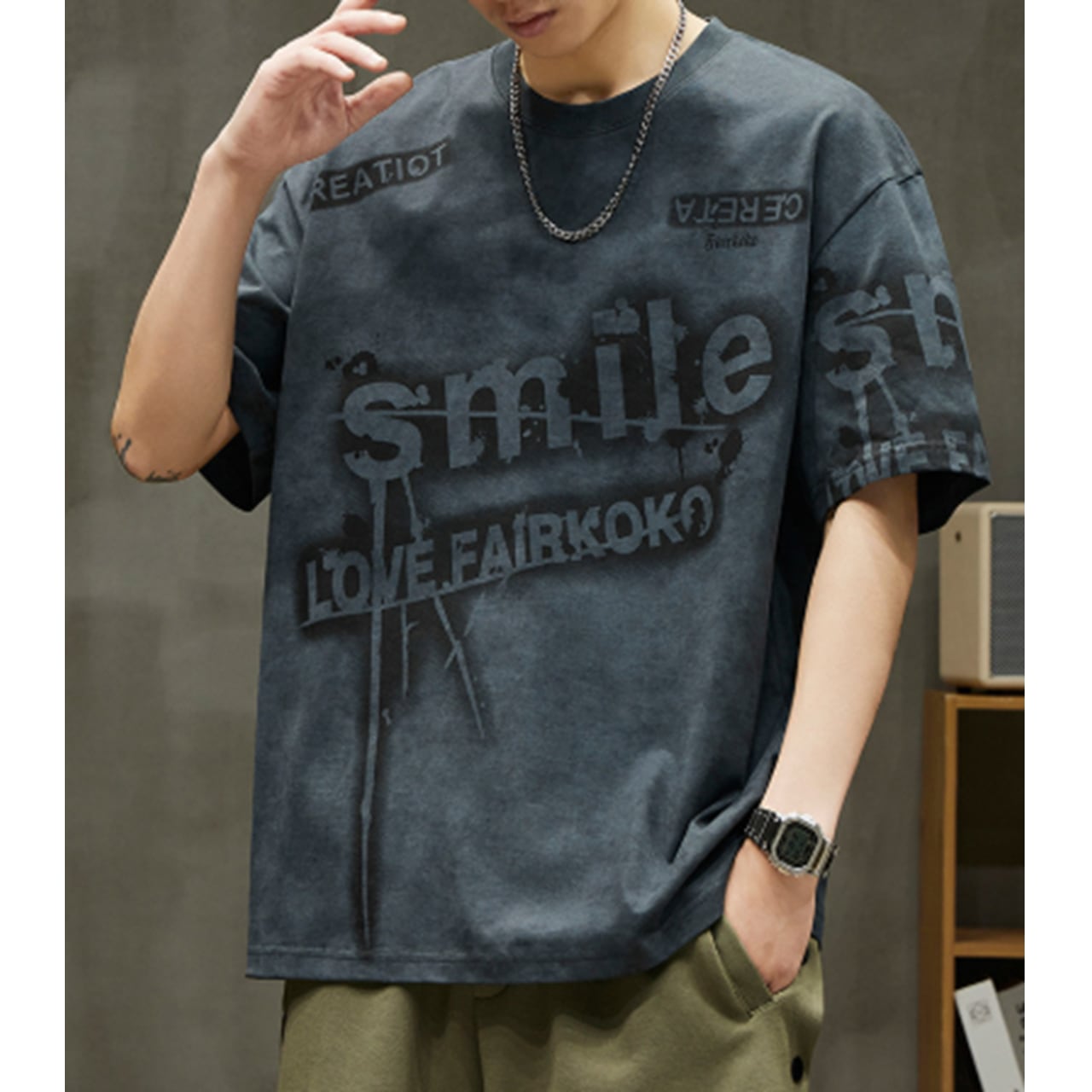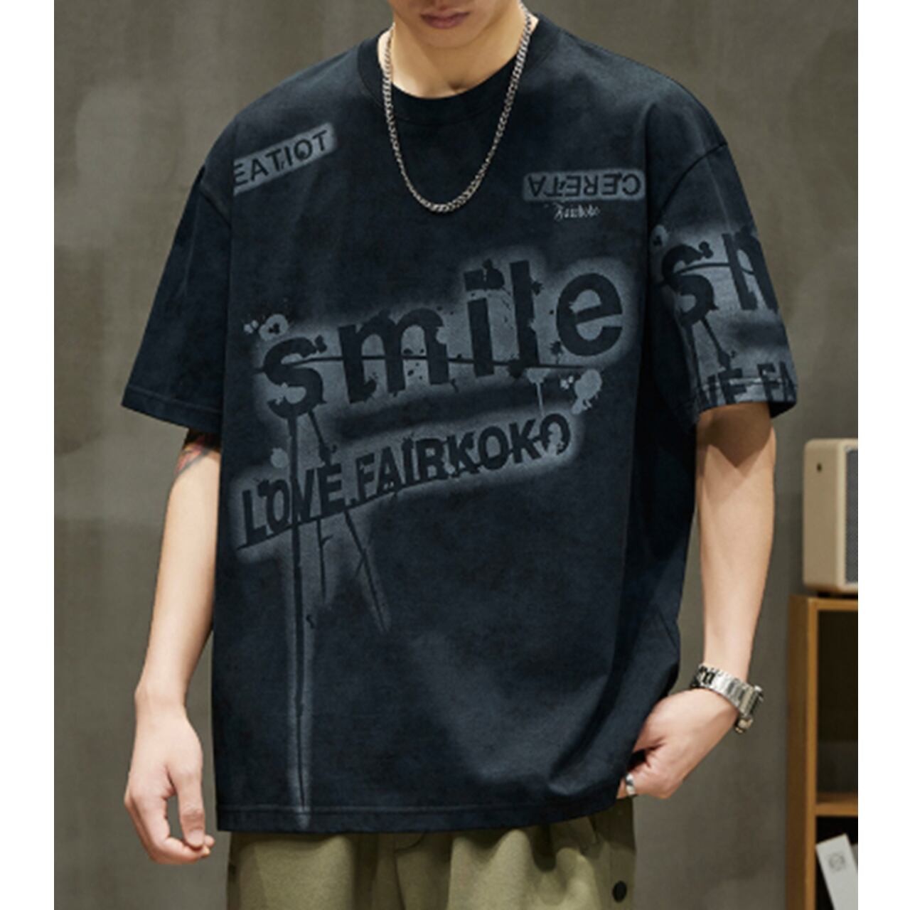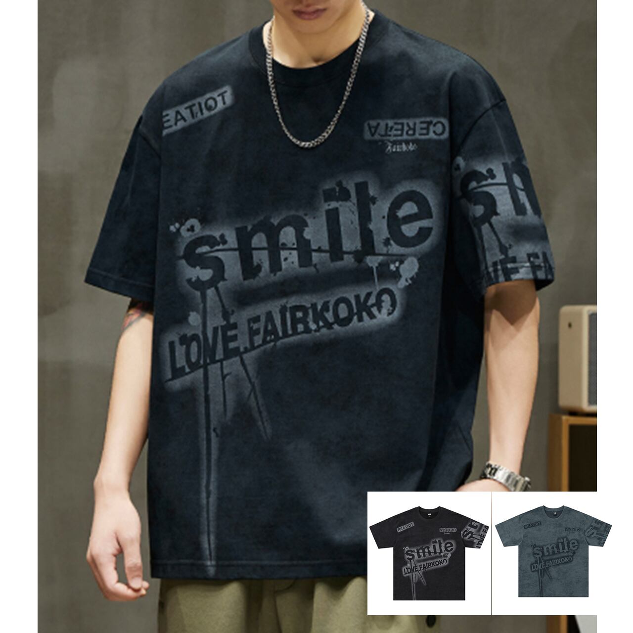 メンズ Tシャツ 半袖Tシャツ グラフィックTシャツ ロゴTシャツ プリントTシャツ フェード加工 ヴィンテージTシャツ 古着風 ストリートファッション 韓国ファッション y2k メンズコーデ カジュアル 夏服 春服 オーバーサイズ ビッグシルエット ダメージ風 加工T