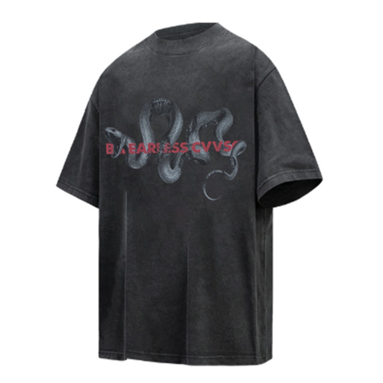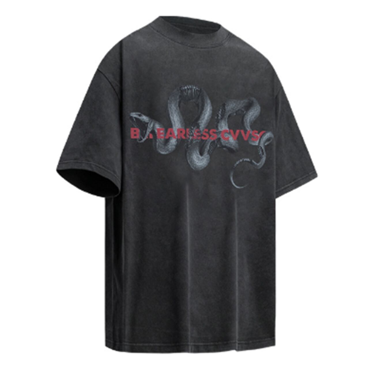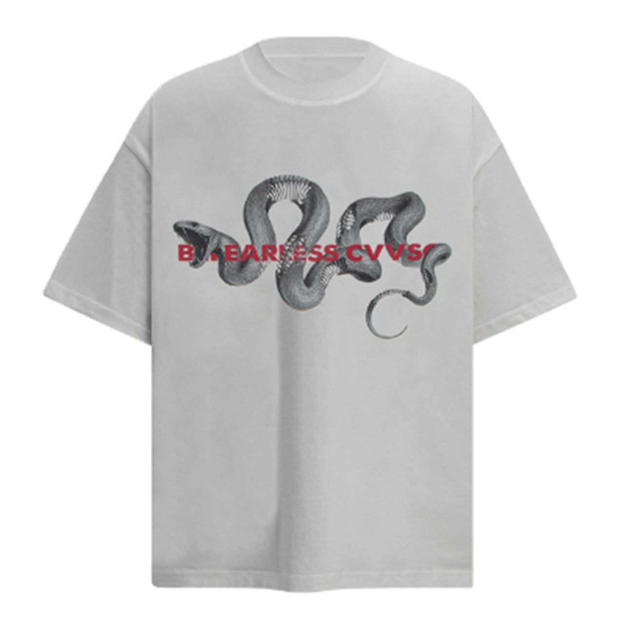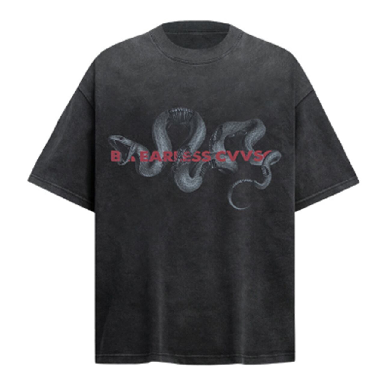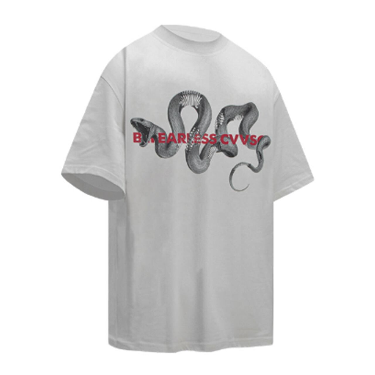 メンズ Tシャツ 半袖 オーバーサイズ ビッグシルエット ストリートファッション 韓国ファッション グラフィックTシャツ プリントTシャツ スネーク 蛇モチーフ モード系 メンズコーデ カジュアルコーデ 春夏ファッション インパクトデザイン ロック系 ダーク系 ブラックコーデ ホワイトコーデ